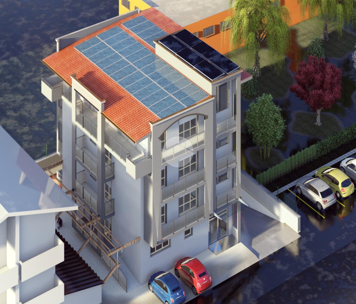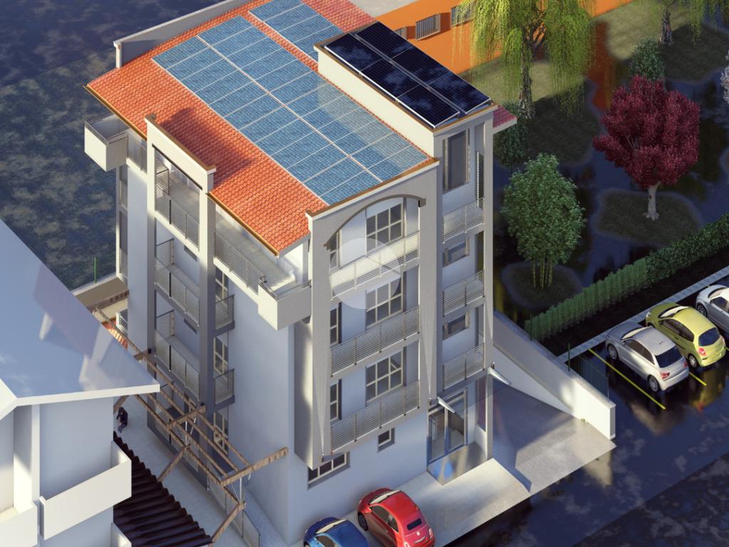 Ogni appartamento sarà dotato di impianto fotovoltaico personale con tanto di batterie di accumulo, oltre ad avere un impianto fotovoltaico dedicato a tutte le parti condominiali; saranno installate pompe di calore e si avrà la possibilità di optare per il riscaldamento a pavimento.