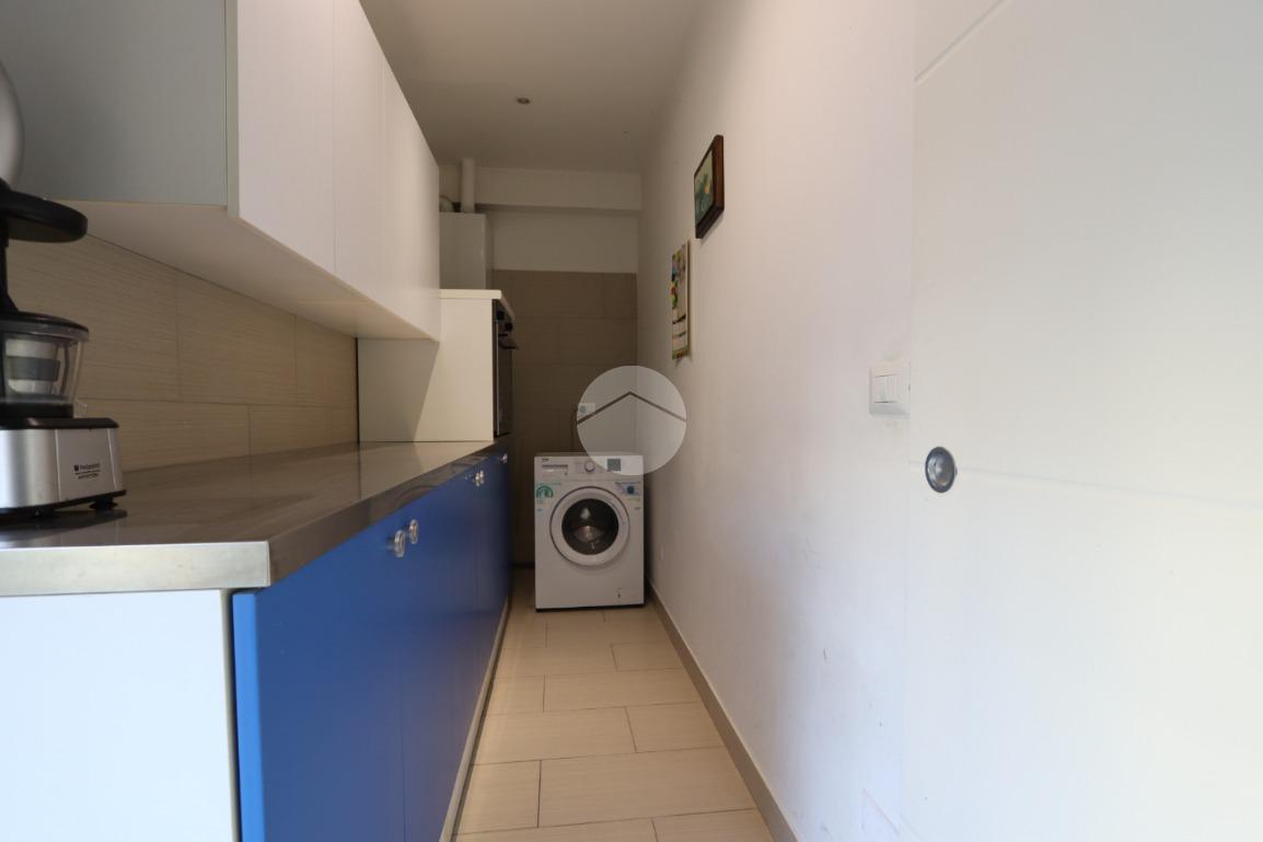 L’immobile si compone di un ampio soggiorno con angolo cottura da cui si gode una splendida vista mare, che regala luce e suggestione ad ogni momento della giornata. Un comodo retrocucina con balcone aggiunge praticità e funzionalità alla zona giorno.