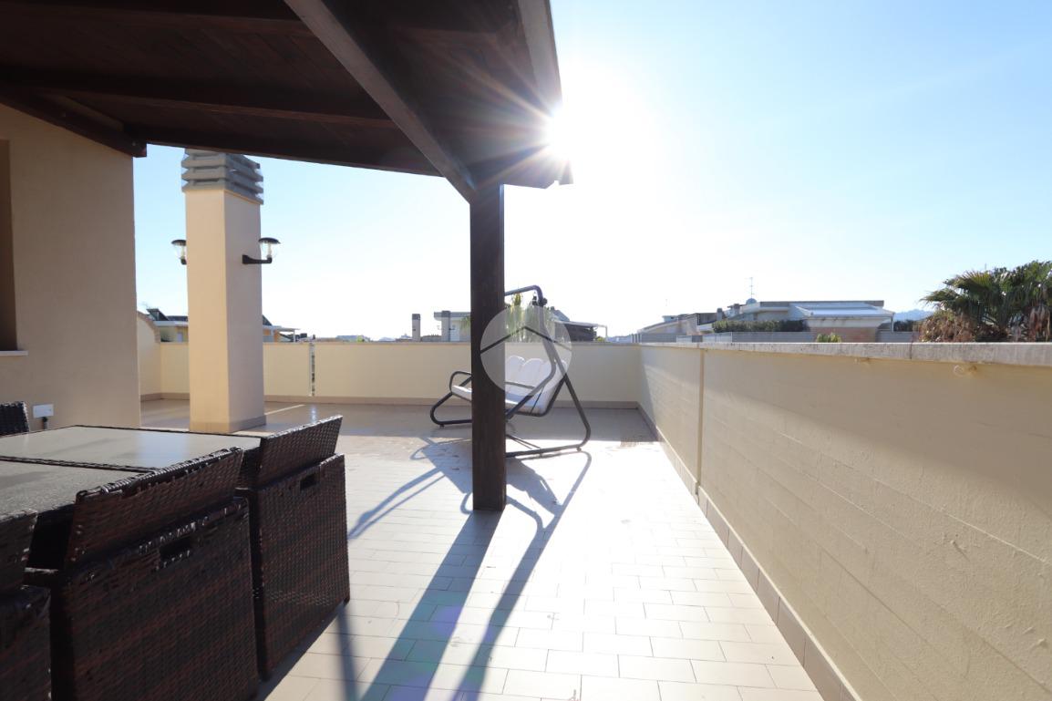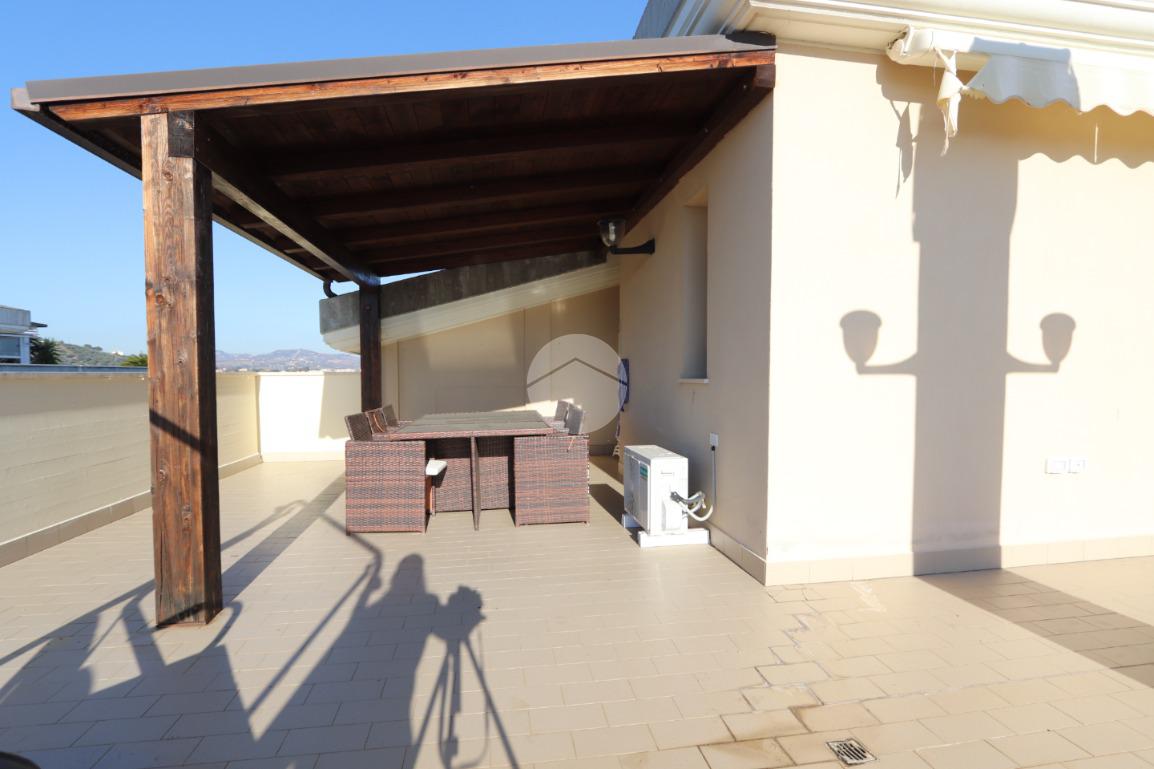 Ciò che rende davvero unico questo livello è il magnifico terrazzo di circa 80 m² con vista sul mare e sulle colline. È uno spazio scenografico, ampio e riservato, ideale per chi ama vivere l’esterno come vera estensione della casa. L’attuale proprietà lo ha valorizzato con una struttura in legno che crea una zona d’ombra naturale, sotto la quale trova posto un grande tavolo per cene estive, aperitivi con gli amici o momenti di relax al tramonto. Un luogo che conquista immediatamente.