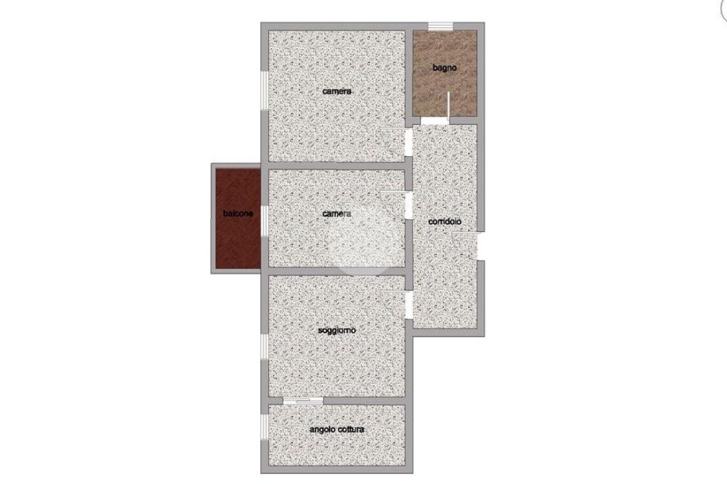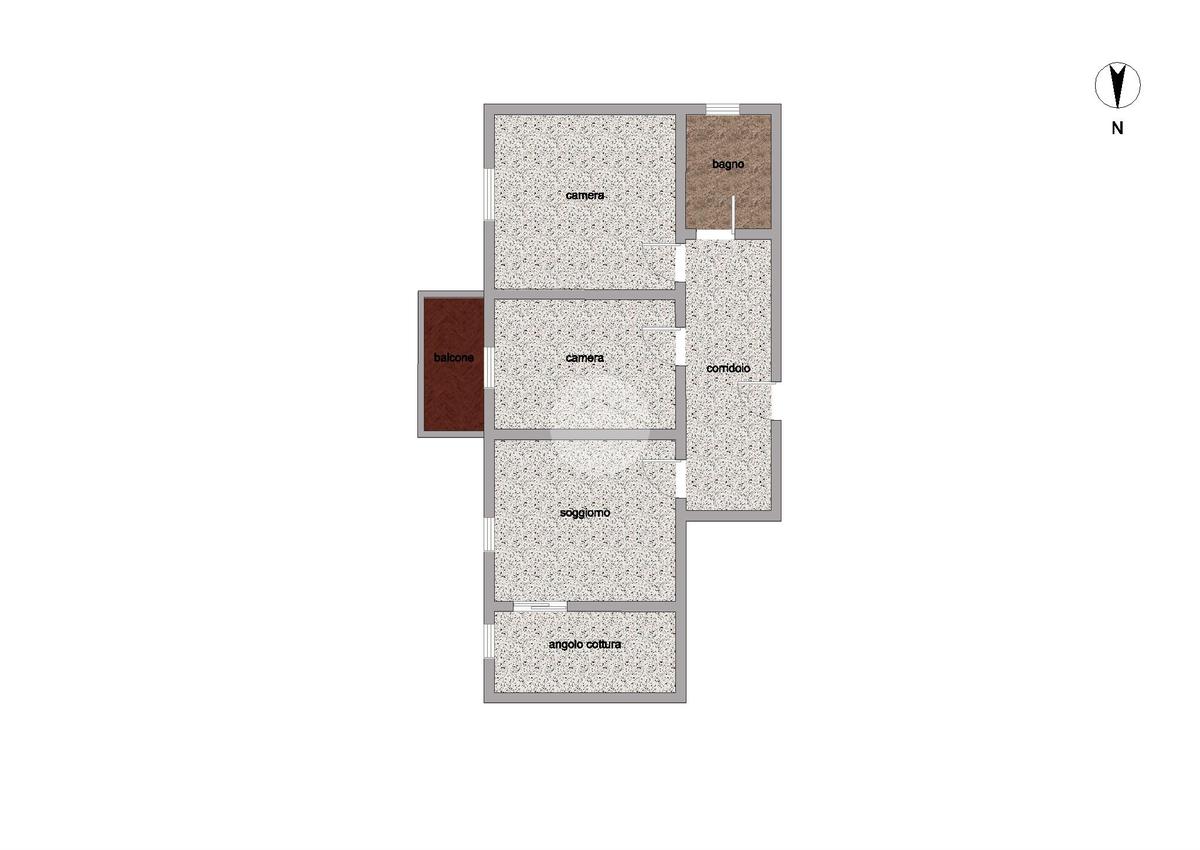 Gli ambienti interni si distinguono per metrature comode e ben distribuite: ingresso accogliente, soggiorno con angolo cottura separato, due ampie camere matrimoniali e bagno finestrato con vasca. A servizio dell’abitazione un balcone, ideale per un momento di relax all’aria aperta.