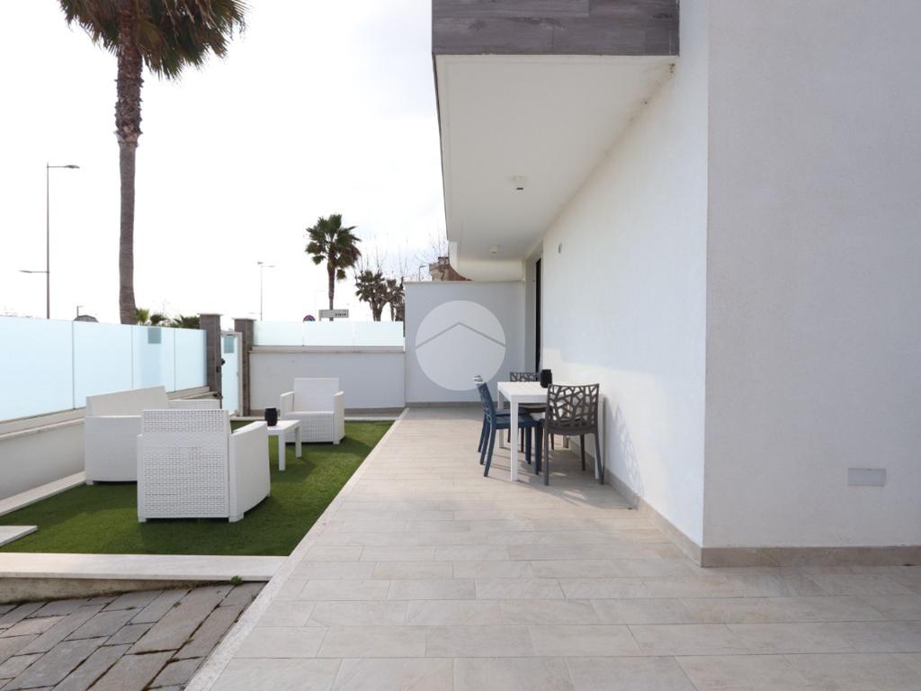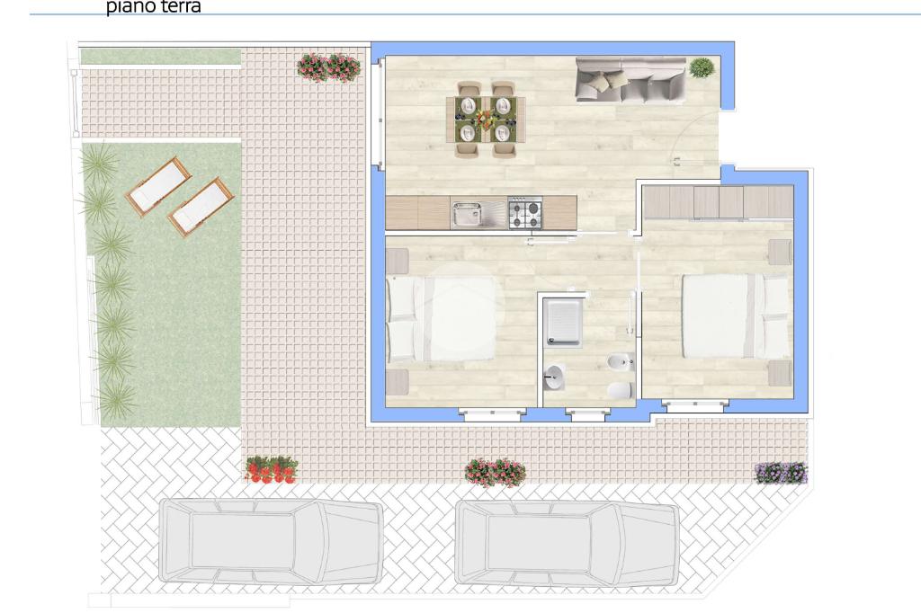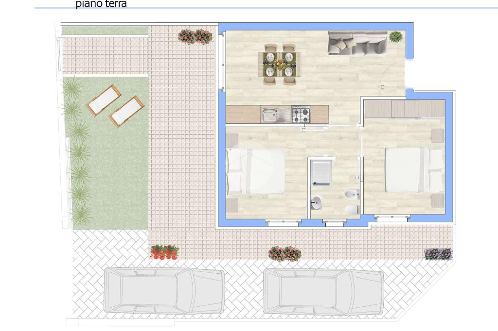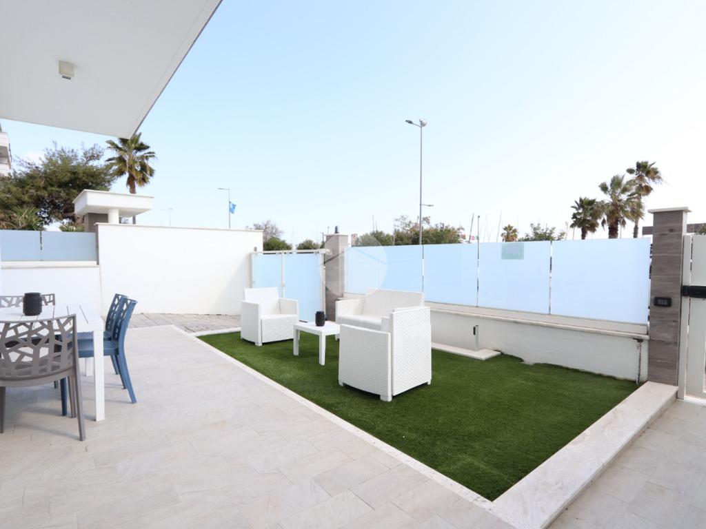Punto di forza assoluto è la corte esterna privata di circa 70 mq, uno spazio versatile e prezioso: in parte adibito a giardino, ideale per momenti di relax all’aria aperta, e in parte organizzato con due comodi posti auto, una vera rarità per immobili fronte mare.